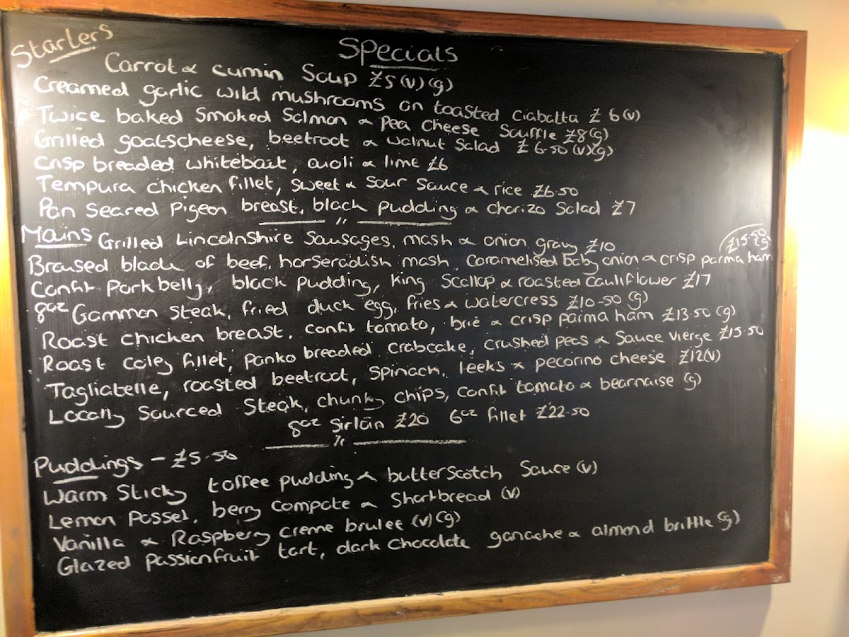 The menu at The Caunton Beck offers a well-rounded and satisfying selection that reflects both comforting tradition and a touch of indulgence. Starters like the Goats Cheese Starter set a refined tone, while hearty mains such as the Roast Beef and rich, flavorful Pork Belly showcase the kitchen’s strength in classic British cooking. Lighter, rustic options like the Ploughmans and the thoughtfully prepared Cheese and Crackers with a Pickle provide balance and variety. Desserts are equally memorable, with highlights including the decadent Glazed Passion Fruit Tart Dark Chocolate Ganache a Almond Brittle and the indulgent Cornish Vanilla Ice Cream with Bailey's Irish Cream and Expreso, leaving a lasting impression. Overall, the menu demonstrates a careful blend of quality ingredients and traditional favorites, making it both comforting and appealing for a wide range of diners.